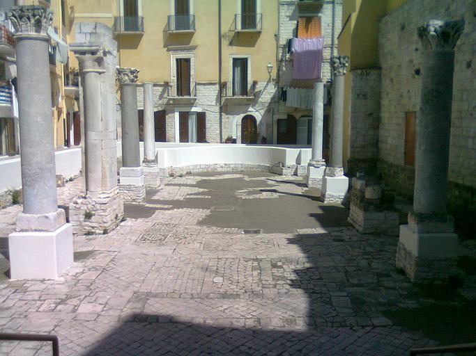 | Keywords: Santa Maria del Buon Consiglio Bari.jpeg Sono io l'autore della fotografia da me scattata con il mio smartphone la mattina del 6 aprile 2013 Vi si vedono i resti dell'antica chiesa di Santa Maria del Buon Consiglio a Bari vecchia opera risalente ai secoli IX - XII - http //www iccd beniculturali it/medioevopugliese/index php it/82/catalogo-iccd/140/bari-chiesa-di-santa-maria-del-buon-consiglio-mosaici-pavimentali Itinerari culturali del medioevo pugliese Bari Chiesa di Santa Maria del Buon Consiglio mosaici pavimentali - Si trattava di una chiesa a tre navate In fondo il muretto intonacato di bianco indica la collocazione dell'abside ora non più esistente mentre sul pavimento ribassato di circa 70 cm rispetto all'attuale sede stradale sono ancora presenti chianche a losanghe ed alcuni mosaici Essendo io l'autore della foto la rilascio in licenza libera it wikipedia 2013-09-22 Fidia 82 wikipedia it Fidia 82 Soprintendenza per i Beni Storici Artistici ed Etnoantropologici della Puglia PD-Utente Original upload log it wikipedia Santa_Maria_del_Buon_Consiglio_Bari jpeg wikitable - 2013-09-22 18 25 1600×1200× 535532 bytes Fidia 82 <nowiki>Sono io l'autore della fotografia da me scattata con il mio smartphone la mattina del 6 aprile 2013 Vi si vedono i resti dell'antica chiesa di Santa Maria del Buon Consiglio a Bari Vecchia opera risalente ai secoli IX - XII Secol </nowiki> 9th-century churches in Apulia |