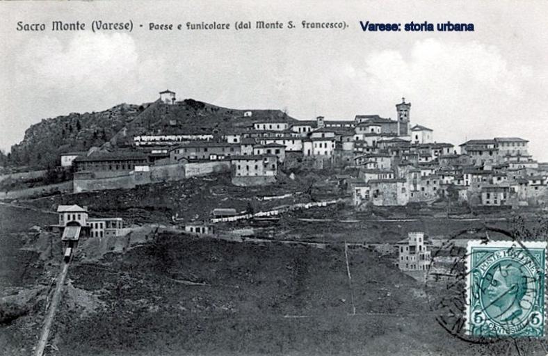 Keywords: varese funicolare outdoor Vista su Santa Maria del Monte e la stazione superiore della funicolare (aperta nel 1909) ripresa dal monte S. Francesco. L'edificio della stazione è ancora completamente isolato e separato dal nucleo storico del villaggio. In basso, sulla via Fincarà, sorge solitaria la villa Macchi-Zonda (Lodovico Pogliaghi, 1902). Vista su Santa Maria del Monte e la stazione superiore della funicolare (aperta nel 1909) ripresa dal monte S. Francesco. L'edificio della stazione è ancora completamente isolato e separato dal nucleo storico del villaggio. In basso, sulla via Fincarà, sorge solitaria la villa Macchi-Zonda (Lodovico Pogliaghi, 1902).