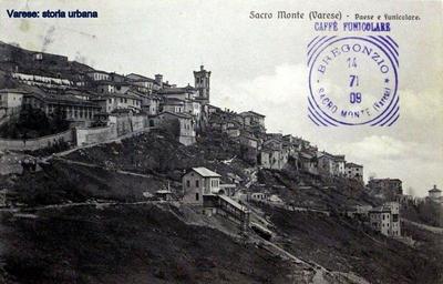 Keywords: varese funicolare outdoor Vista su Santa Maria del Monte e la stazione superiore della funicolare (aperta nel 1909) ripresa dal monte S. Francesco. L'edificio della stazione è ancora completamente isolato e separato dal nucleo storico del villaggio. In basso, sulla via Fincarà, sorge solitaria la villa Macchi-Zonda (Lodovico Pogliaghi, 1902). Vista su Santa Maria del Monte e la stazione superiore della funicolare (aperta nel 1909) ripresa dal monte S. Francesco. L'edificio della stazione è ancora completamente isolato e separato dal nucleo storico del villaggio. In basso, sulla via Fincarà, sorge solitaria la villa Macchi-Zonda (Lodovico Pogliaghi, 1902). |