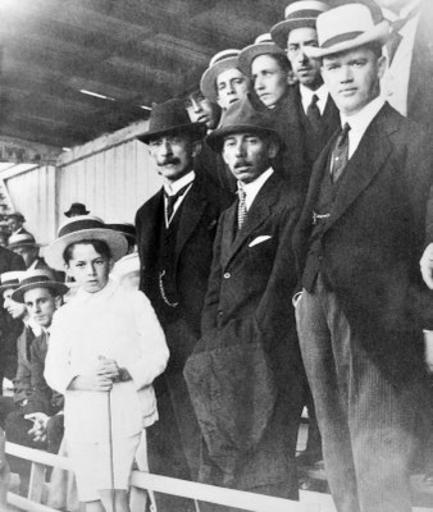 Keywords: Santos Dumont em Curitiba.jpg en Santos Dumont in Curitiba Parana Brazil - 1916 pt Santos Dumont com o Presidente do Estado do Paraná Afonso Camargo com chapéu preto e bigode em Curitiba 1916 Literatura Author 1916 PD-old 1916 in Brazil Fashion in 1916 Alberto Santos-Dumont Curitiba |
