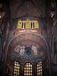 Keywords: SanVitale08.jpg Choir with intrados Christ offers the martyr crown to San Vitale while an angel offers a model of the church to bishop Ecclesius; Basilica of San Vitale in Ravenna Italy Abside della basilica di San Vitale a Ravenna decorata con mosaici bizantini compiuti entro il 547 risto offre la corona di martire a San Vitale mentre un angelo offre un modello di chiesa al vescovo Ecclesio own 2006-04-05 Georges Jansoone PD-Art GFDL Cc-by-sa-3 0-migrated Cc-by-2 5 San Vitale Ravenna - Mosaics - Apse Apses in Ravenna Vitalis of Milan Ravenna Mosaics of angels Ravenna Mosaics of Christ Pantocrator Ravenna Ecclesius bishop Paleochristian art |