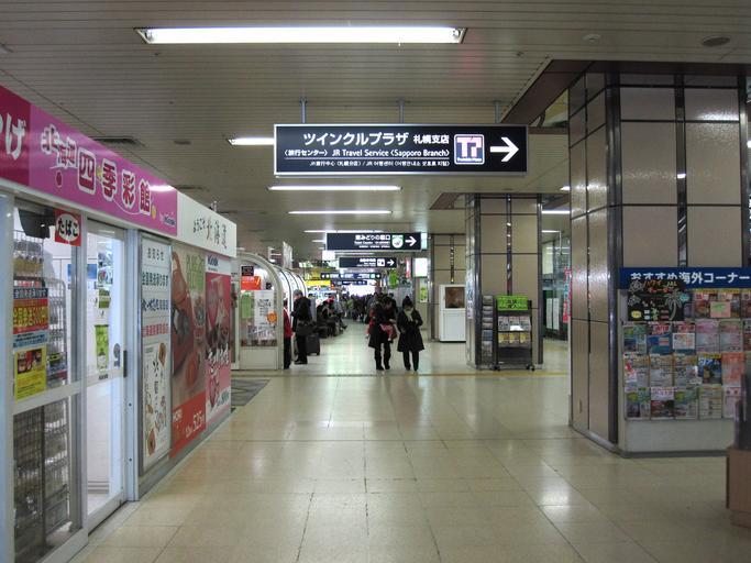 Keywords: Sapporo station east concourse.jpg ja 幌駅 コンコース(JR北海道函館 線) 2012-03-26 own Ninosan cc-zero Interior of Sapporo Station Uploaded with UploadWizard