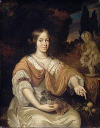 | Keywords: Sara Pottey (1651-1705). Echtgenote van Johan van Bochoven Rijksmuseum SK-A-1655.jpeg accession number SK-A-1655 Creator Daniël Haringh credit line nl Portret van Sara Pottey echtgenote van Johan van Bochoven Kniestuk zittend met een wijnrank met trossen druiven en ander fruit op haar schoot rechts een standbeeld of fontein van een putto met een dolfijn Ze wijst met haar linkerhand naar een tak met sinaasappels Pendant van SK-A-1654 drager Height cm 61 drager Width cm 49 exhibition history Institution Rijksmuseum Technique oil canvas object history Acquisition 1895 object type Potential derivatives exist check http //commons wikimedia org/w/index php search Rijksmuseum+SK-A-1655 this search PD-US PD-old Data and photography rights All data and all images made available through the API are either in the public domain or are subject to a CC0 license https //www rijksmuseum nl/en/api/terms-and-conditions-of-use cc-zero place of creation http //www rijksmuseum nl/collectie/SK-A-1655 Sara Pottey 1651-1705 Echtgenote van Johan van Bochoven Q17324435 Uploaded with GWToolset Sara Pottey 1651-1705 Echtgenote van Johan van Bochoven Rijksmuseum SK-A-1655 http //www rijksmuseum nl/media/assets/SK-A-1655 Images uploaded by Fæ Images from the Rijksmuseum Paintings by Daniël Haringh in the Rijksmuseum Amsterdam Daniël Haringh |