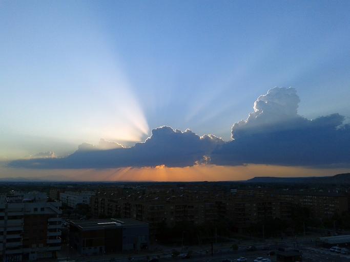 Keywords: saragossa ebro spain city clouds buildings sunset sun