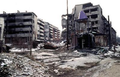 Keywords: Sarajevo Grbavica.JPG View of Grbavica a neighbourhood of Sarajevo approximately 4 months after the signing of the Dayton Peace Accord that officially ended the war in Bosnia This particular scene shows the part of the neighbourhood located by the left bank of Miljacka river near Vrbanja bridge at the point where Zagrebačka Street and Beogradska Street later renamed Emerika Bluma Street meet Throughout the war 1992-1995 Grbavica was held by the forces of Bosnian Serbs In relation to the part of Grbavica shown in the photo Bosnian Muslim Bosniak lines were right across on the Miljacka river's right bank Due to its location in the crossfire between two sides this part of Grbavica was exposed to constant fire and as a result suffered heavy structural damage It was basically uninhabitable throughout the war - most of the apartments in the buildings seen in the photo were empty during the war as their occupants fled early on fearing for their safety These ruins of the apartments and houses were among the last group to be turned over by the Bosnian Serbs to the Bosniaks a k a Bosnian Muslims as required by the Dayton Peace Accord which produced a lasting cease fire and permanent internal borders between two entities - Republika Srpska Serb entity and Federation of Bosnia-Herzegovina Muslim-Croat entity The white building whose small part corner can be seen along the photo's left edge housed the state-owned Unioninvest company before the war In the years after the war ended the partially devastated building was rebuilt and to this day houses the Office of the High Representative OHR an ad hoc international institution responsible for overseeing implementation of the Dayton Peace Accord in essence OHR is Bosnia's highest decision-making institutional body with broad powers http //www dodmedia osd mil/DVIC_View/Still_Details cfm SDAN DFST9805440 JPGPath /Assets/Still/1998/Air_Force/DF-ST-98-05440 JPG www dodmedia osd mil 1996-03-09 LT STACEY WYZKOWSKI Public Domain PD-USGov-Military 43 51 10 15 N 18 24 20 07 E region BA_heading SW PD-USGov Siege of Sarajevo Grbavica Sarajevo Ruins of the War in Bosnia and Herzegovina in Sarajevo Streets in Sarajevo 1996 in Sarajevo 1996 photographs |