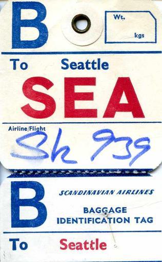 Keywords: SAS Scandinavian bag tag B front.jpg en SWE Scandinavian Airlines blue bag tag front with the last destination and the airline flight Own work from scan Piergiuliano Chesi 2012-06-20 scan date trademarked Bag tags SAS Scandinavian Airlines in art |