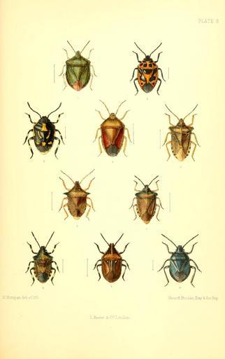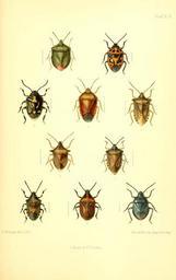 | Keywords: SaundersHemipteraHeteropteraBritishIslandsPlate3.jpg  en Edward Saunders 1892 The Hemiptera Heteroptera of the British Islands a descriptive account of the families genera and species indigenous to Great Britain and Ireland with notes as to localities habitats Plate 3 https //commons wikimedia org/wiki/File SaundersHemipteraHeteropteraBritishIslandsPlate3text jpg text 1 Pentatoma prasina Lin Palomena prasina Linnaeus 1761 2 Strachia festiva Lin Eurydema Rubrodorsalium dominulus Scopoli 1763 3 Strachia oleracea Lin Eurydema oleracea Linnaeus 1758 4 Piezodorus lituratus Fab Piezodorus lituratus Fabricius 1794 5 Tropicorus rufipes Lin Pentatoma rufipes Linnaeus 1758 6 Pieromerus bidens Lin Picromerus bidens Linnaeus 1758 7 Podisus luridus Fab Troilus luridus Fabricius 1775 8 Asopus punctatus Lin Rhacognathus punctatus Linnaeus 1758 9 Jalla dumosa Lin Jalla dumosa Linnaeus 1758 10 Zicrona coerulea Lin Zicrona caerulea Linnaeus 1758 1892 http //www biodiversitylibrary org/bibliography/12459 /summary Edward Saunders other versions PD-old-70-1923 Saunders Hemiptera Heteroptera British Islands Uploaded with UploadWizard Palomena prasina Eurydema dominulus Eurydema oleracea Piezodorus lituratus Pentatoma rufipes Picromerus bidens Troilus luridus Rhacognathus punctatus Jalla dumosa Zicrona caerulea |