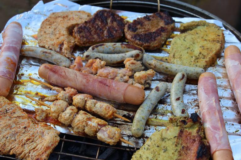 Keywords: sausages barbecue steaks meat grilled food tasty summer bbq sausage delicious grill celebration charcoal party stainless eat ham herb butter
