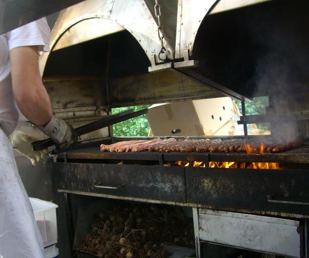 Keywords: sausages grill fire embers heat pine cones spice fire