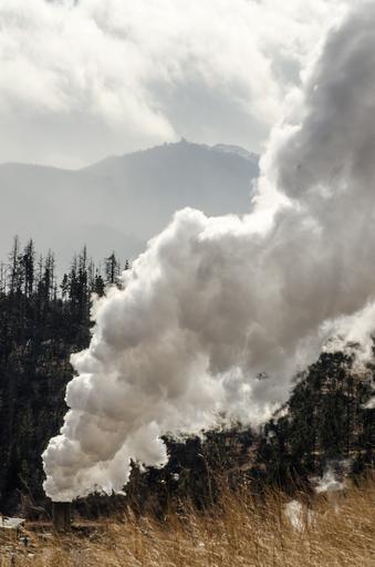 Keywords: sawmill sawmill smokestack smoke chimney lumber smokestack logging industrial sky mountains hills trees wood timber mill machinery equipment log machine industry forest forestry material lumberyard