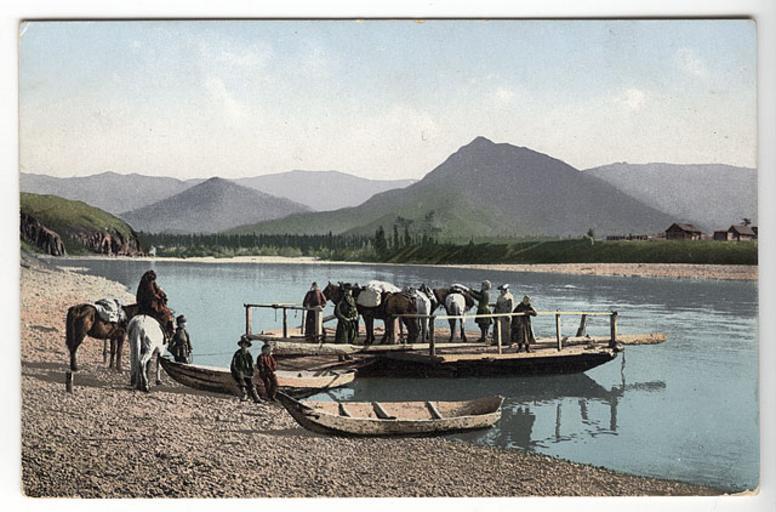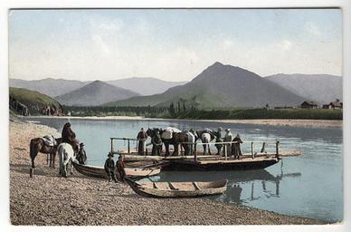 Keywords: SB - Pont over Katun River near Nizhny Uymon.jpg Па ом на еке Катунь у села ижний Уймон Pont over de Katoenrivier bij het dorp Nizjni Oejmon district Oest-Koksinski autonome republiek Altaj Rusland http //www sibheritage nsc ru/index php id 2707 showcoll 73 f 1 media 4 taken between 1911 and 1914 Creator Sergei Ivanovich Borisov PD-old Middle Katun History of the Altai Republic Sergei Ivanovich Borisov Horses of Russia Ferries in Russia