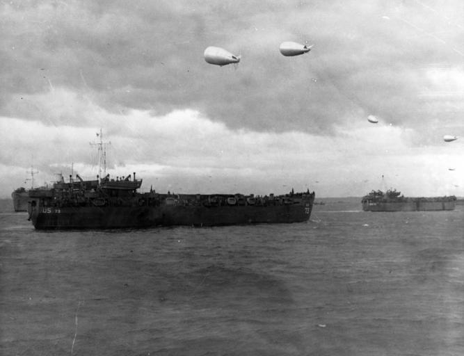 | Keywords: blackandwhite monochrome outdoor sky black and white SC 190462: Normandy Invasion, June 1944. Landing ships (with USS LST-73 in the foreground), carrying troops of the 8th Infantry Regiment, 4th Infantry Division, move toward the north coast of France on "D-Day", 6 June 1944. They are protected against low-flying enemy aircraft by gas-filled balloons. Photograph from the Army Signal Corps Collection in the U.S. National Archives. (2015/12/30). SC 190462: Normandy Invasion, June 1944. Landing ships (with USS LST-73 in the foreground), carrying troops of the 8th Infantry Regiment, 4th Infantry Division, move toward the north coast of France on "D-Day", 6 June 1944. They are protected against low-flying enemy aircraft by gas-filled balloons. Photograph from the Army Signal Corps Collection in the U.S. National Archives. (2015/12/30). |