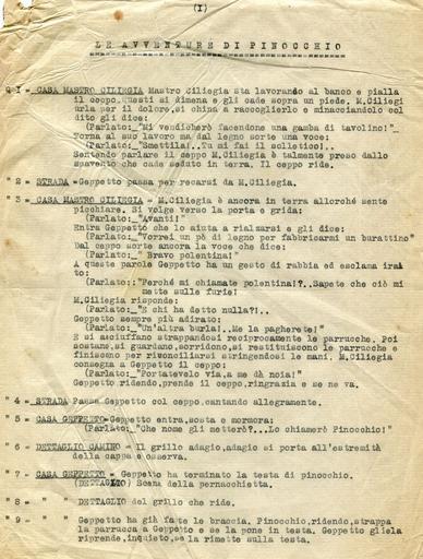 | Keywords: Sceneggiatura originale del cartone animato Le avventure di Pinocchio (1936).jpg it Sceneggiatura originale del cartone animato Le avventure di Pinocchio del 1936 Archivio personale di Alessandro Michelini Iaio1969 1935 20th-century cartoons |