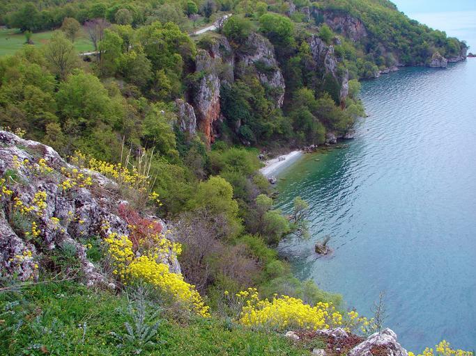 Keywords: scenery lake landscape nature beautiful water wild flowers bay beach colorful spring green cliffs trees detail stones rock