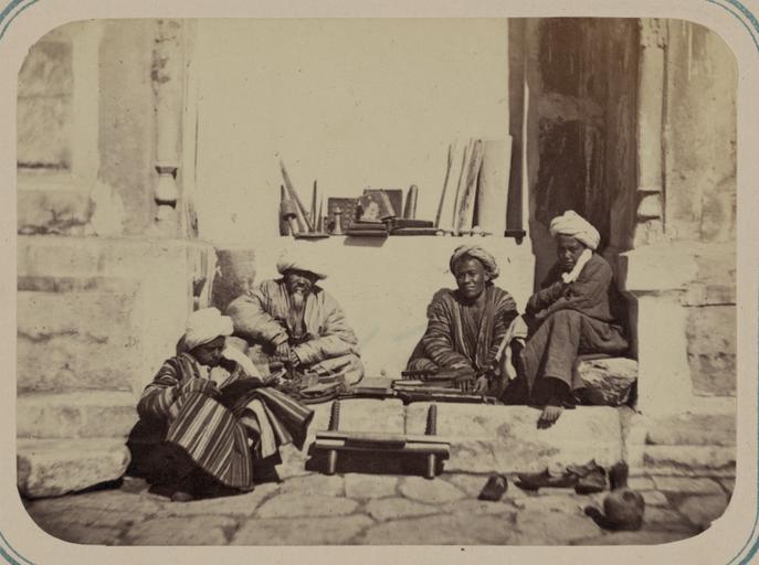 | Keywords: Scenes at the Samarkand Square, or the Registan, and Its Market Types. Bookbinder WDL10879.png Artwork ru Кун Александ Людвигович 1840 1888 гг fr Kun Aleksandr L 1840-1888 en Kun Aleksandr L 1840-1888 zh 亚历山大·L· ,1840-1888 年 pt Kun Aleksandr L 1840-1888 ar كُن، ألكسندر ل ، 1840-1888 es Kun Aleksandr L 1840-1888 ru Сцены на сама кандской площади Реджистан и ее база ные типы Пе еплетчик fr Scènes sur la place de Samarcande ou Registan et ses types de marchand Relieur en Scenes at the Samarkand Square or the Registan and Its Market Types Bookbinder zh 撒马尔罕广 (或列吉斯 广 )上的 景及各类集市 书籍装订商 pt Cenas na praça de Samarcanda ou Registan e seus tipos de mercados Encadernador de livros ar مناظر لساحة سمرقند أو ريجستان وأنواع الأسواق بها مُجلِّد للكتب ru Эта фотог афия входит в этног афическую часть <em> Ту кестанского альбома </em><em></em> всесто оннего исследования Цент альной Азии п едп инятого после того как в 1860-х годах в егионе установилось господство Российской импе ии Альбом созданный по аспо яжению гене ала Константина Пет овича фон Кауфмана 1818 1882 годы пе вого гене ал-губе нато а оссийского Ту кестана состоит из четы ех частей в шести томах «Часть а хеологическая» два тома «Часть этног афическая» два тома «Часть п омысловая» один том и «Часть исто ическая» один том Основным составителем альбома был оссийский востоковед Александ Людвигович Кун аботавший совместно с иколаем Венедиктовичем Богаевским В альбоме п едставлено около 1200 фотог афий а также а хитекту ные планы аква ельные исунки и ка ты «Часть этног афическая» включает в себя 491отдельную фотог афию на 163 листах а фотог афиях изоб ажены п едставители азличных на одов егиона листы 1 33 повседневная жизнь и итуалы листы 34 91 а также виды де евень и го одов уличные то говцы и комме ческая деятельность листы 92 163 <br>База ы; Книги; Книгото говцы и книгото говля; Этног афические фотог афии; Г упповые по т еты; Рынки; То говцы; Фотог афические исследования; По т етные фотог афии; Тю кские на оды fr Cette photographie est extraite de la partie ethnographique de l'<em>Album du Turkestan</em> étude visuelle complète de l'Asie centrale entreprise après que l'Empire russe prit le contrôle de la région dans les années 1860 Commandé par le général Konstantin Petrovich von Kaufman 1818 1882 premier gouverneur général du Turkestan russe l'album est composé de six volumes en quatre parties la partie archéologique deux volumes la partie ethnologique deux volumes la partie sur les métiers un volume et la partie historique un volume L'album fut essentiellement compilé par l'orientaliste russe Aleksandr L Kun assisté de Nikolai V Bogaevskii Il comporte près de 1200 photographies et inclut également des plans architecturaux des dessins à l'aquarelle et des cartes La partie ethnographique compte 491 photographies sur 163 planches montrant des individus des différentes peuplades de la région planches 1 à 33 des scènes de la vie quotidienne et des rites planches 34 à 91 ainsi que des vues de villages et de villes de vendeurs ambulants et d'activités commerciales planches 92 à 163 <br>Bazars; Livres; Libraires et librairies; Photographies ethnographiques; Portraits de groupe; Marchés; Marchands; Inventaires photographiques; Portraits photographiques; Peuples turciques en This photograph is from the ethnographical part of <em>Turkestan Album</em><em> </em>a comprehensive visual survey of Central Asia undertaken after imperial Russia assumed control of the region in the 1860s Commissioned by General Konstantin Petrovich von Kaufman 1818 82 the first governor-general of Russian Turkestan the album is in four parts spanning six volumes Archaeological Part two volumes ; Ethnographic Part two volumes ; Trades Part one volume ; and Historical Part one volume The principal compiler was Russian Orientalist Aleksandr L Kun who was assisted by Nikolai V Bogaevskii The album contains some 1 200 photographs along with architectural plans watercolor drawings and maps The Ethnographic Part includes 491 individual photographs on 163 plates The photographs show individuals representing the different peoples of the region Plates 1 33 ; daily life and rituals Plates 34 91 ; and views of villages and cities street vendors and commercial activities Plates 92 163 <br>Bazaars; Books; Booksellers and bookselling; Ethnographic photographs; Group portraits; Markets; Merchants; Photographic surveys; Portrait photographs; Turkic peoples zh 这张照片出自<em> 其斯 相册 </em>的民族部分,该相册是俄罗斯 国 19 世纪 60 年代取得中亚控制 后, 手制 的 部针对该 区的综合 图像调查记录 相册由俄罗斯驻 其斯 (俄罗斯 国中亚属 的名称)首任 康斯 丁·彼得罗维奇·凡· 夫曼(Konstantin Petrovich von Kaufman,1818 82 年)将军赞助完