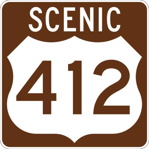 Keywords: Scenic US 412.svg 750 mm by 750 mm 30 in by 30 in Scenic US 412 shield made to the specifications of the Manual on Uniform Traffic Control Devices MUTCD 2003 Edition sign M1-5 Uses the Roadgeek 2005 fonts United States law does not permit the copyrighting of typeface designs and the fonts are meant to be copies of a U S Government-produced work anyway Own 2007-08-14 TwinsMetsFan Public domain Three-digit U S Highway shields 412 Scenic SVG road signs in Oklahoma 412 Scenic U S Route 412 |