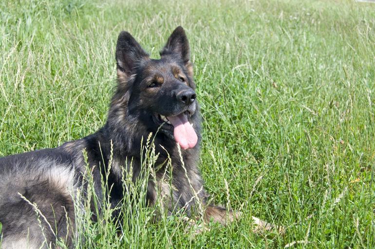 Keywords: schäfer dog german shepherd german longhaired pointer fur tongue dog good animal meadow walk relaxation satisfied summer hot pant