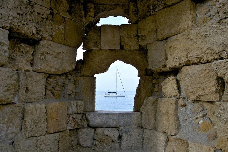 MAKE A MEME View Large Image Schiff through walls.jpg en A ship flying german flag through the walls of the medieval city of Rhodes Greece fr Un bateau battant pavillon allemand à travers une meurtrière des remparts de Rhodes Grèce own Jebulon 2011-04-17 36 26 47 9 ...