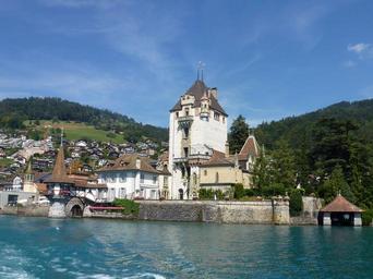 Keywords: schloss oberhofen bernese oberland lake scenic switzerland mountains summer water thun wave
