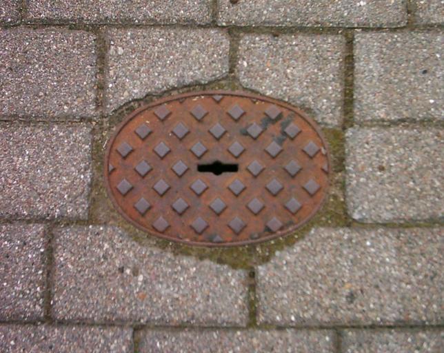Keywords: Schlüsselloch.jpg Abdeckung mit Schlüsselloch vor den Deichtorhallen Hamburg Streethole cover with keyhole Hamburg Germany own Own photo 2006-10 GeorgHH for free use public domain Streethole covers in Hamburg Keyholes