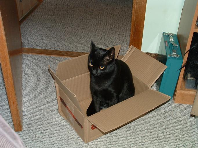 Keywords: Schmitty.JPG en Schmee Schmee Own Schmittyblack 7/1/07 Me None Solid black cats Cats in boxes