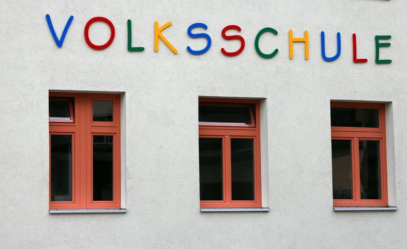 Keywords: school window facade building learn education know children elementary school font letters colorful