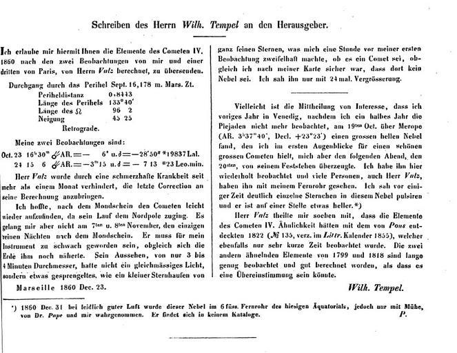 Keywords: Schreiben tempel.jpg Schreiben des Herrn Wilhelm Tempel an den Herausgeber In Astronomische Nachrichten volume 54 1861 p 285 Source http //adsabs harvard edu/cgi-bin/nph-bib_query bibcode 1861AN 54 285T db_key AST PD-old 1861 Letters written messages |