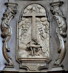 Keywords: Schussenried Chorgestühl 45 Beweinung.jpg Bad Schussenried Pfarrkirche St Magnus ehemalige Klosterkirche ; Chorgestühl von Georg Anton Machein und Werkstatt 1715 “1717<br /> Bibelrelief Beweinung Christi own own photograph 2011-09 Photo Andreas Praefcke Chorgestühl Kloster Schussenried Photos by User AndreasPraefcke Reliefs of Pietà in Germany |