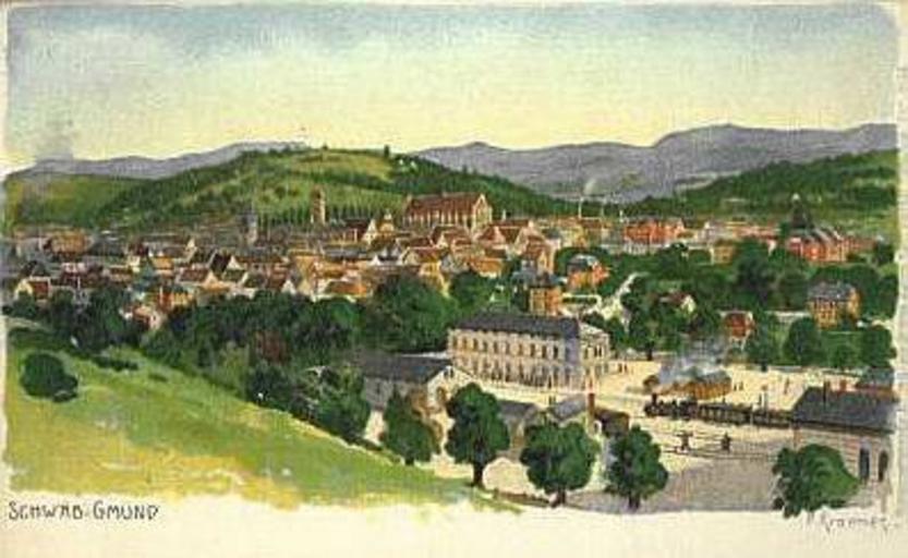 Keywords: Schwaebisch-gmuend-1900.jpg AK Schwäbisch Gmünd um 1900 Originally uploaded to de-wikipedia by de Benutzer Enslin PD-Art Bahnhof Schwäbisch Gmünd Historic views of Schwäbisch Gmünd Artworks missing infobox template