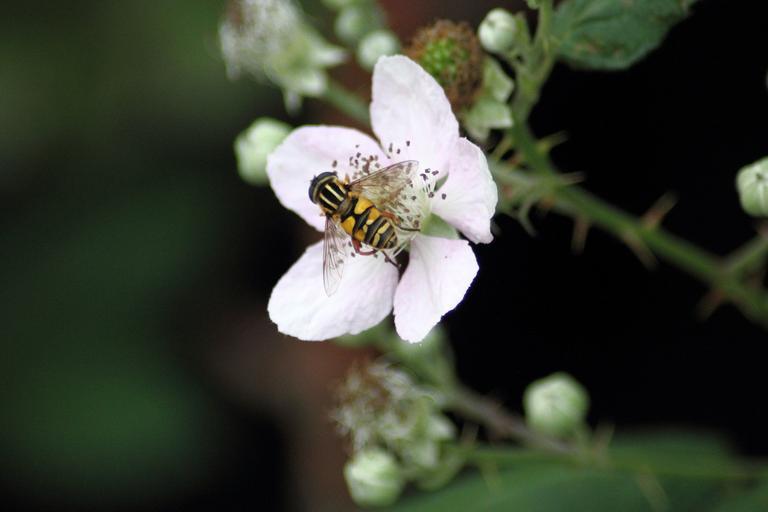 Keywords: schwebfiege fly on flower white blossom autumn insect nature animals