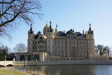 Keywords: schwerin castle burgsee mecklenburg germany architecture palace building historic attraction old towers park parliament famous lake touristic capital mecklenburg-vorpommern exterior facade