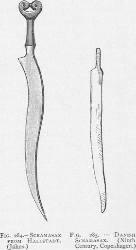 Keywords: Scramsax.png An illustration from Richard Burton's The Book of the Sword 1884 comparing a Hallstatt-era with a Viking Age fighting knife Burton labels both weapons as Scramasax In current terminology the Hallstatt-era weapon would not be considered as falling under this term which is usually reserved for Roman era to early medieval weapons PD-old Seaxes |