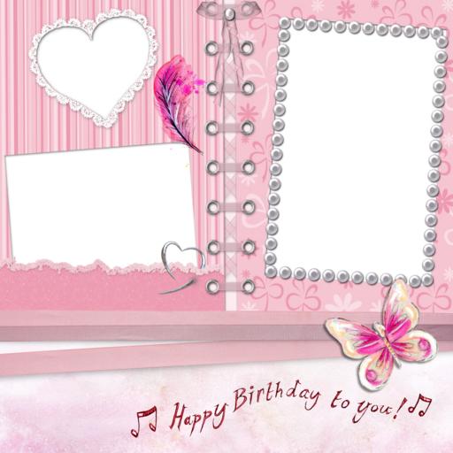 Keywords: scrapbook background happy birthday girl page pink feather flower butterfly frame daisy white paper bright color colorful creative style decor decorative element photo picture arts and crafts heart