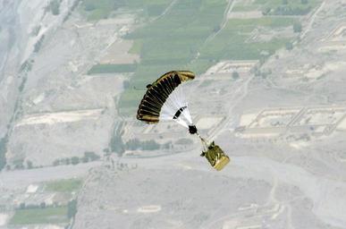 Keywords: Screamer 2K, Joint Precision Air Drop System DVIDS29496.jpg en OVER AFGHANISTAN - The new GPS guided Screamer 2K bundle Joint Precision Air Drop System floats to the ground after being dropped from the back of a C-130 Hercules over Afghanistan Aug 26 2006 The drop was made from 17 500 feet above mean sea level and was the first joint Air Force/Army operational drop of JPADS in the Central Command Area of Responsibility Four bundles were dropped from the Alaska Air National Guard C-130 The system is designed to provide precision airdrops from high altitudes elimination the treat of small arms fire All four bundles arrived at the drop zone re-supplying Army troops on the ground with ammunition and water U S Air Force photo/Senior Airman Brian Ferguson 2006-08-31 https //www dvidshub net/image/29496 29496 2006-09-08 13 25 AF PD-USGov Lockheed C-130 Hercules Images from DoD uploaded by Fæ |