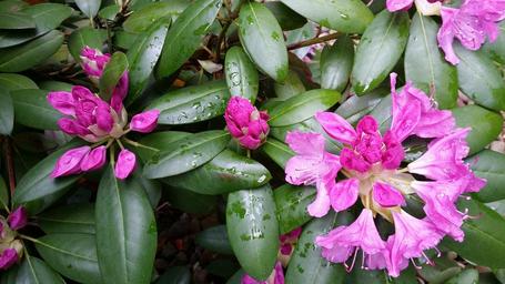 Keywords: scrubs bushes spring blooming garden flowers beautiful pink branch blossom colorful drops leaves nature