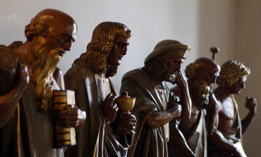 Keywords: sculpture the apostles wooden brown characters confession sacred the cenacle wooden sculpture artistic