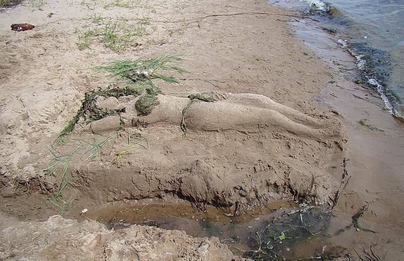 Keywords: sculpture from sand river bank summer sun
