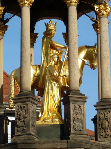 Keywords: sculpture golden magdeburger reiter magdeburg saxony-anhalt old town monument reiter horse emperor statue historically fig gold crown ride