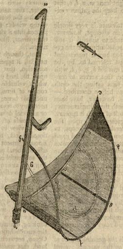 | Keywords: Scythe with cloth gatherer, a cradle type made before 1802.png of Fig D4 the letters virtually appear upside down a “b “c a common scythe c d m l o f n e the gatherer; which is composed of c “d “e a thin iron plate; having a cavity at its extremity for receiving the point of the blade e d holes for sewing in the cloth which is light coarse and cheap it is likewise fixed to two thick iron wires the upper of which is continued to f where it terminates in a hole in the handle “ the other is secured to the back of the blade Detached figure The method of fixing the gatherer to such blade will be more clearly understood by referring to the small detached figure delineated in the cut above given and representing one of the irons which are secured by means of screws to the back of the scythe These irons proceed from and constitute a part of the upright irons m n I o that that serve to keep the gatherer extended Further notes This contrivance is very simple and cheap an attempt however has been made to simplify it still farther by substituting for the gatherer two iron-hoops represented in the Cut last referred to by the dotted lines marked h g k i with p a cross-piece that serves to connect them; thus saving the cloth and iron plate before described “ Experiments however have been made with both these implements; from the result of which it appears that the gatherer is upon the whole preferable to the hoops as no ears of corn are left behind; and that the latter alteration promises to be most serviceable when there is no short corn that can insinuate itself between such iron hoops The Domestic Encyclopædia; Or A Dictionary Of Facts And Useful Knowledge ¦ Volume Fourth published in London 1802; cf pages 36 “40 Scythe ; the illustration is on p 39 before 1803 author PD-old-100 The Domestic Encyclopædia Cradle scythes Agricultural machine illustrations ImageNote 2 278 2 85 67 870 1764 2 a top of the handle ImageNoteEnd 2 ImageNote 3 64 1568 83 81 870 1764 2 b bottom of the handle ImageNoteEnd 3 ImageNote 4 665 610 85 83 870 1764 2 c top or toe of the blade; and a cavity at the extremity of the triangle-shaped thin iron plate a reinforcing element of the gatherer for receiving the point of the blade ImageNoteEnd 4 ImageNote 6 787 997 81 81 870 1764 2 d corner of the triangle-shaped thin iron plate a reinforcing element of the gatherer; and a hole for sewing in the cloth ImageNoteEnd 6 ImageNote 7 598 887 78 83 870 1764 2 e corner of the triangle-shaped thin iron plate a reinforcing element of the gatherer; and a hole for sewing in the cloth ImageNoteEnd 7 ImageNote 5 99 935 110 111 870 1764 2 f hole in the handle where the upper iron wire to which the cloth is fixed to terminates ImageNoteEnd 5 ImageNote 9 177 1121 81 78 870 1764 2 g connection between the handle and one of two iron hoops tested as a substitution for the gatherer ; the hoop is marked by dotted lines and continues to point h at the blade ImageNoteEnd 9 ImageNote 8 525 999 85 92 870 1764 2 h connection between the blade and the larger one of two iron hoops tested as a substitution for the gatherer ; the hoop is marked by dotted lines and continues to point g at the handle ImageNoteEnd 8 ImageNote 11 159 1285 78 81 870 1764 2 i connection between the handle and the smaller one of two iron hoops tested as a substitution for the gatherer ; the hoop is marked by dotted lines and continues to point k at the blade ImageNoteEnd 11 ImageNote 10 359 1234 81 78 870 1764 2 k connection between the blade and the smaller one of two iron hoops tested as a substitution for the gatherer ; the hoop is marked by dotted lines and continues to point i at the handle ImageNoteEnd 10 ImageNote 14 522 1663 94 92 870 1764 2 l connection between the upper iron wire and an upright iron that keeps the gatherer extended ImageNoteEnd 14 ImageNote 12 741 1402 83 85 870 1764 2 m connection between the upper iron wire and an upright iron that keeps the gatherer extended ImageNoteEnd 12 ImageNote 13 410 1147 87 97 870 1764 2 n connection between the blade and an upright iron that keeps the gatherer extended ImageNoteEnd 13 ImageNote 15 154 1402 90 113 870 1764 2 o connection between the blade and an upright iron that keeps the gatherer extended ImageNoteEnd 15 ImageNote 16 495 1432 76 83 870 1764 2 p a reinforcing cross piece for the iron hoop s ; part of the hoop variant which was tested as a substitution for the gatherer ImageNoteEnd 16 ImageNote 1 520 269 226 164 870 1764 2 Detached figure one of the irons which are secured by means of screws to the back of the scythe ImageNoteEnd 1 |