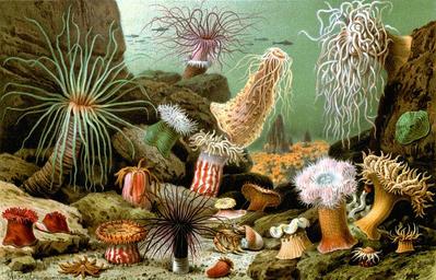 Keywords: sea anemones actiniaria water lilies seenelken aktinien hexacorallia anthozoa underwater diving marine life water creature meeresbewohner ocean coral aqquarium drawing painting 1893