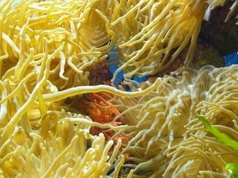 Keywords: sea anemones aquarium actiniaria water lilies seenelken aktinien anthozoa yellow colorful animal