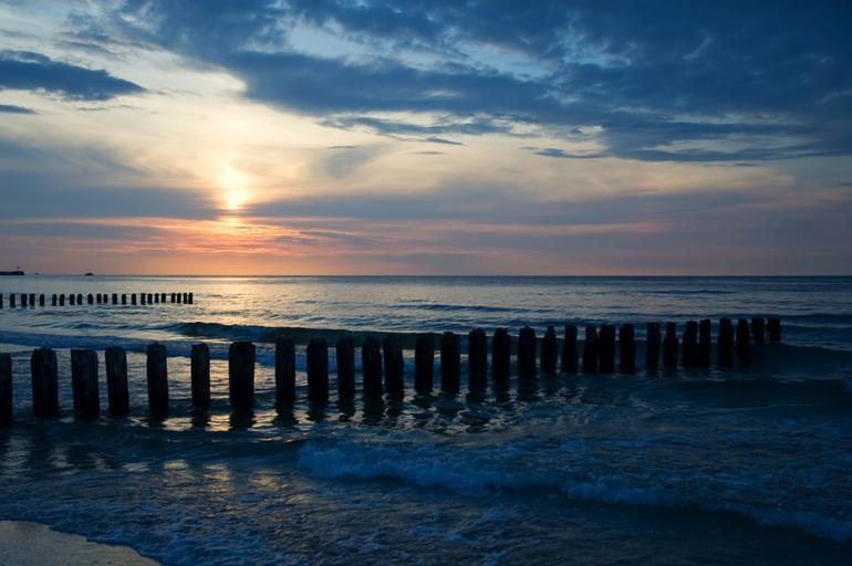 Keywords: sea the baltic sea sunset breakwater water poland