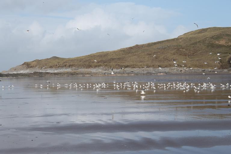 Keywords: sea birds waves low tide shore waders hill gulls water birds fauna scenery scenic