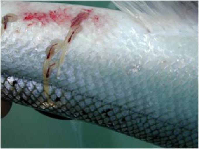Keywords: Sea lice on salmon.jpg en Sea lice L salmonis on farmed Atlantic salmon New Brunswick Canada Own 7Barrym0re 2003 Veterinary parasitology Salmon farms Lepeophtheirus salmonis 2003 in New Brunswick