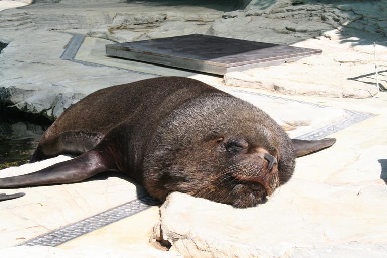 Keywords: sea lion robbe seal sleep lazy zoo animal world