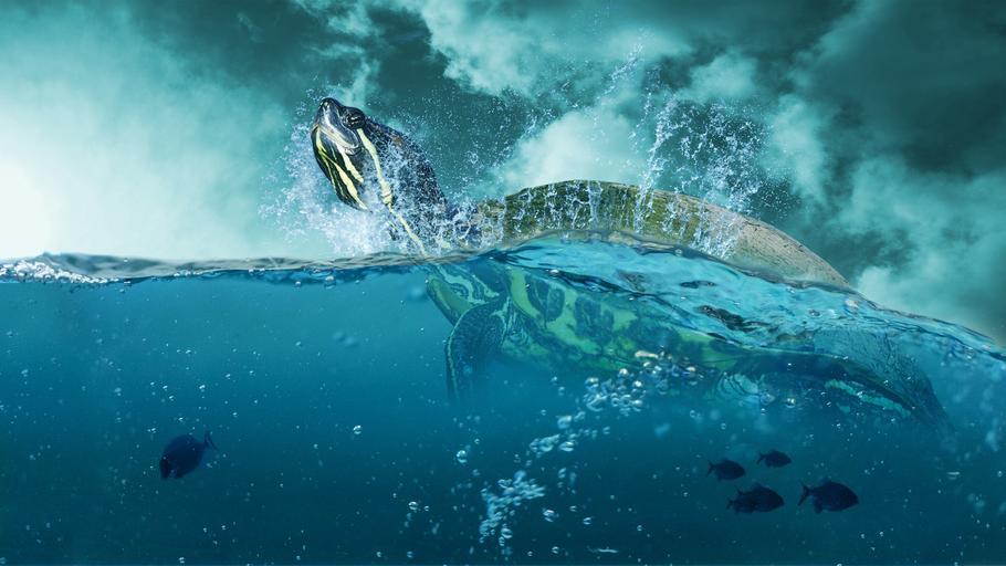 Keywords: sea ocean turquoise water wave fish turtle blue underwater clouds sky nature drama dramatic waters