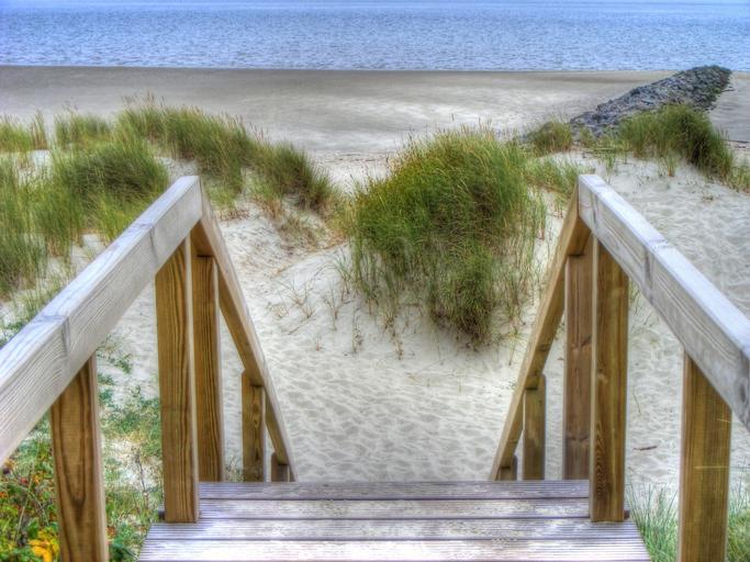 Keywords: sea sand dunes beach traces wind sand beach ocean holiday coast dune hdr stairs