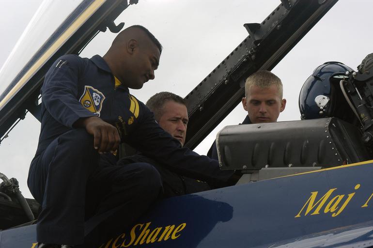 Keywords: Sea and Sky Spectacular DVIDS64312.jpg en Brian Schneider catcher for the Washington Nationals baseball team receives preflight instructions from the crew chief Marine Corps Staff Sgt Deo Harrypersaud before taking a ride in a Blue Angels F/A-18 Hornet The Blue Angels are in Jacksonville Fla for the 2007 Sea and Sky Spectacular Nov 2-4 celebrating the 232nd birthday of the United States Navy and honoring the men and women who served and continue to wear the military uniform with pride 2007-07-14 Petty Officer 1st Class Toiete Jackson https //www dvidshub net/image/64312 071031-N-+++++-019 2007-11-07 10 33 MAYPORT FL US PD-USGov-Military-Navy Washington Nationals Blue Angels Images from DoD uploaded by Fæ