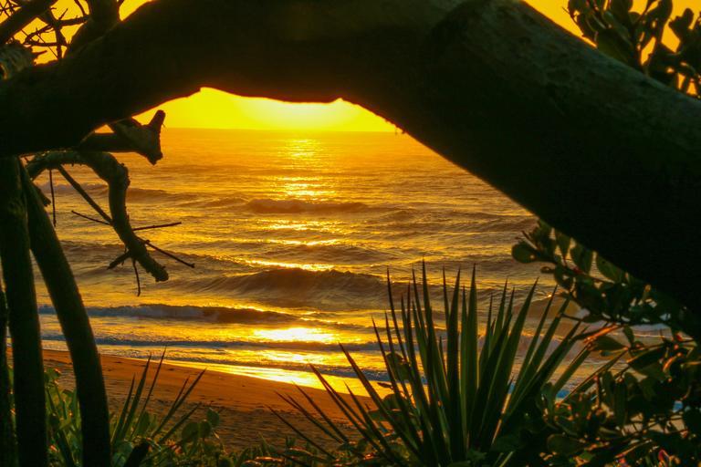 Keywords: sea sun setting glow orange sky beach ocean sunset seascape trees umhlanga rocks south africa