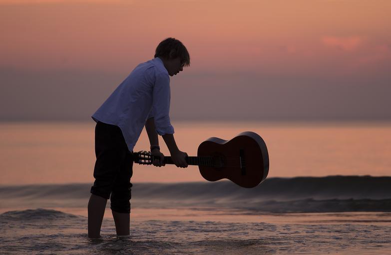 Keywords: sea sunset beach holidays summer wave guitar by the sea